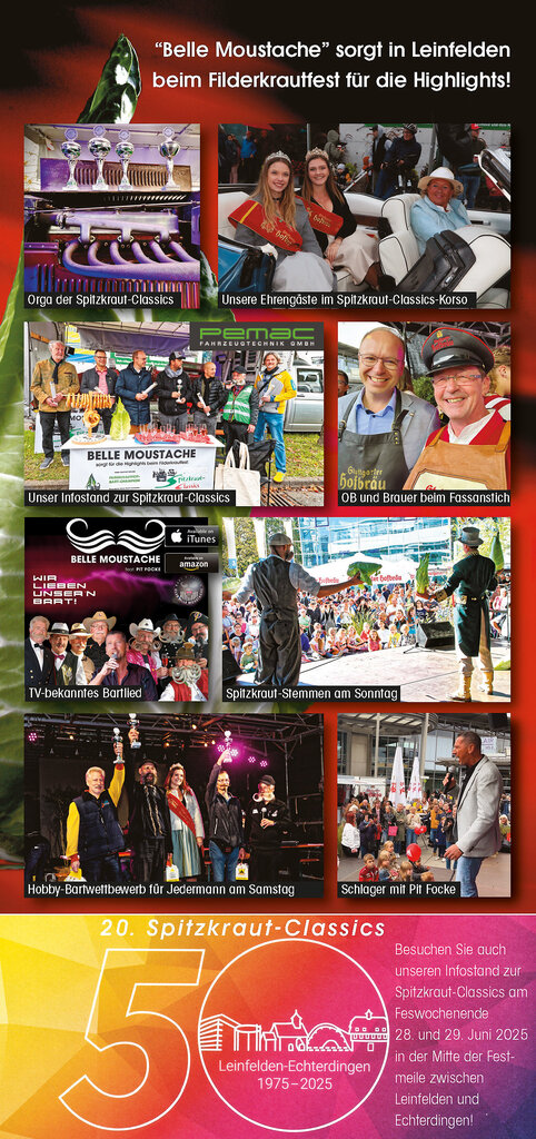 Das Bühnenprogramm des Krautfestes in Leinfelden umfasst den traditionellen Bartwettbewerb, das Krautstemmen für alle Junggebliebenen, die Modenschau der Drogerie Müller sowie Programmpunkte für die ganze Familie.